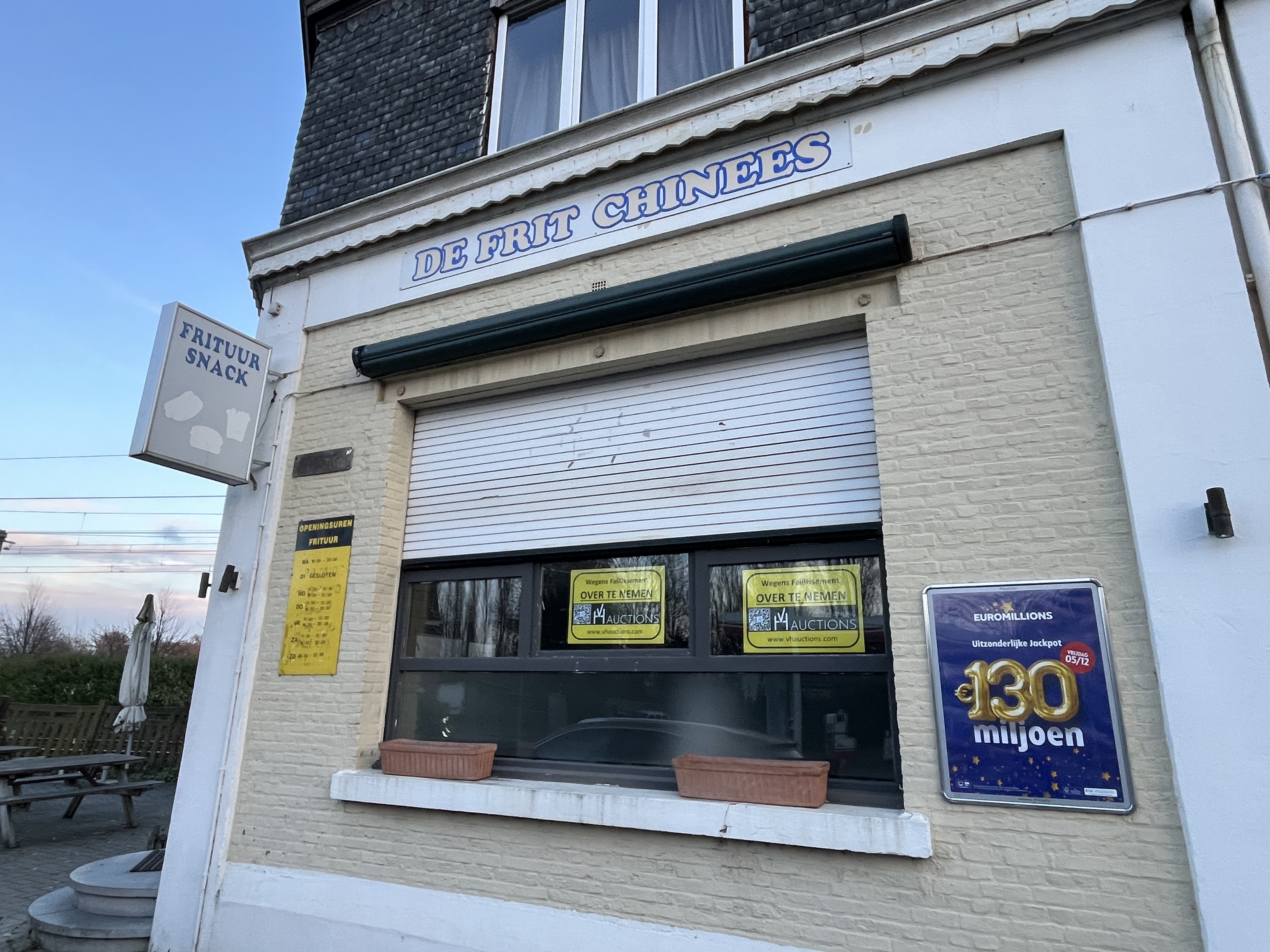 WANG ZAI YOG BV - overname handelsfonds wegens faillissement frituur “FRITCHINEES” – compleet ingerichte goedgelegen frituur te Hemiksem, voorzien van kleine verbruiksruimte en terras. Voor meer informatie: info@vhauctions.be